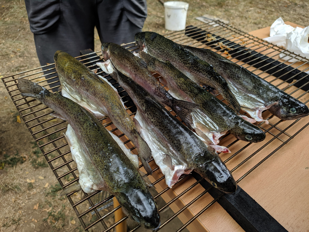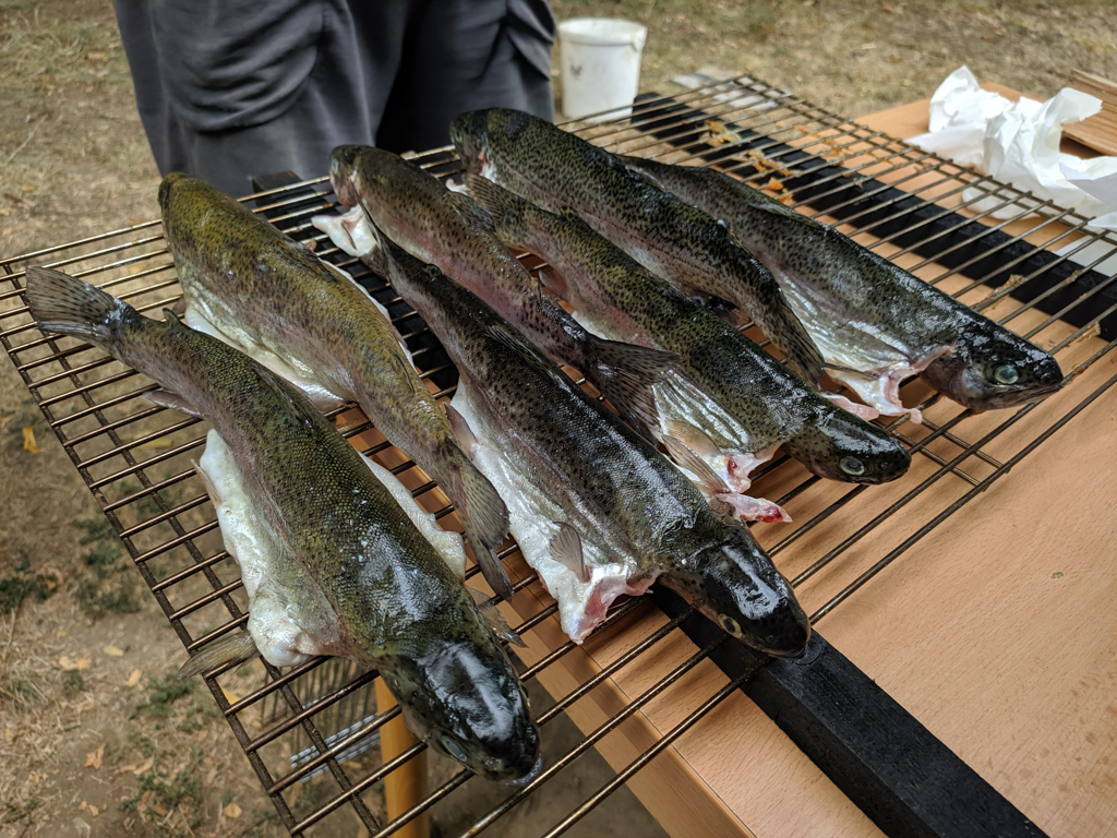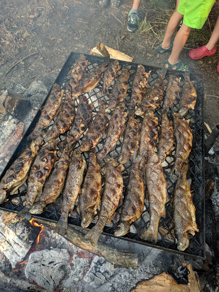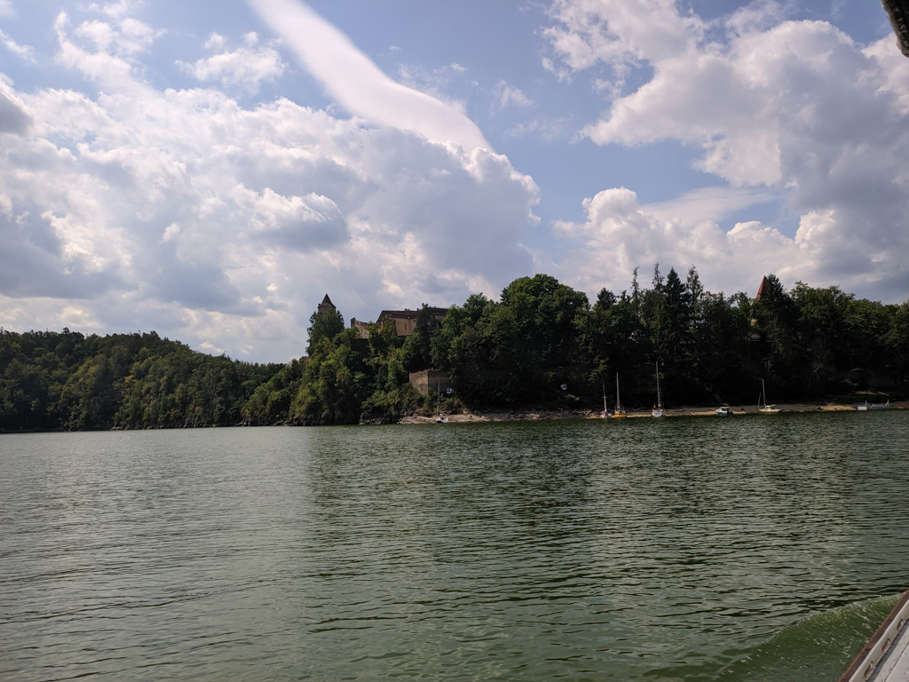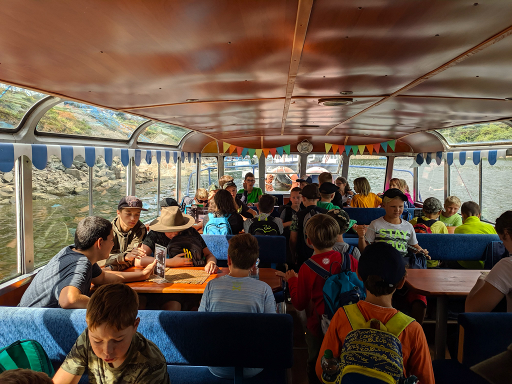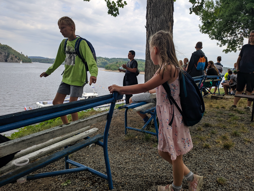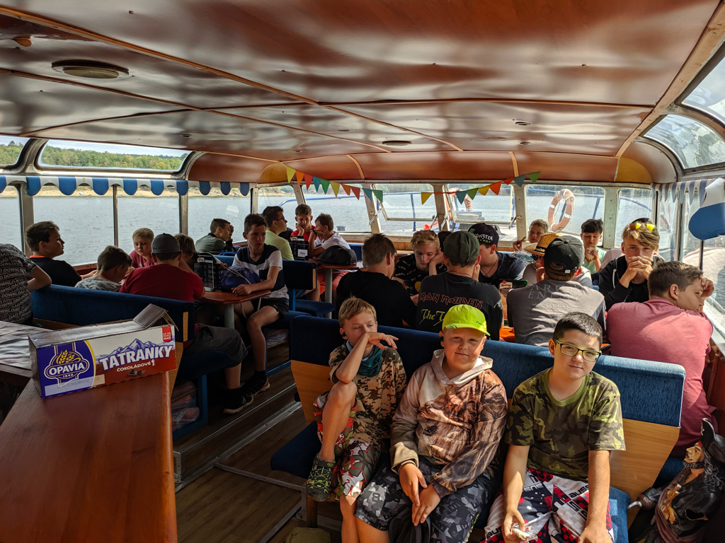 K táboru neodmyslitelně patří i pěší výlety - kromě těch kratších po okolí proběhl i výlet k přehradě Orlík. Toho se zúčastnili všichni, od vedoucích až po ty nejmenší. Začal na stejnojmenném zámku, odkud jsme se lodí plavili na hrad Zvíkov a potom už všichni po svých, do tábora. Nejoblíbenější byly ovšem jiné výpravy, a to ty rybářské, oddíly měly možnost zúčastnit se nočního rybolovu v okolí Štědronína, kde se jim podařilo ulovit i několik opravdu pěkných ryb. A co by to bylo za rybářský tábor bez rybích pochoutek, těch mohly děti ochutnat hned několik, od grilovaných nebo uzených pstruhů až po kapří hranolky.