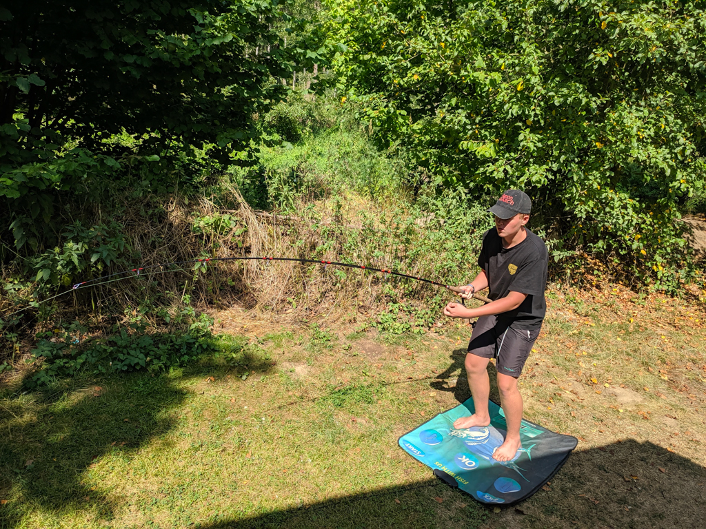 | Na táboře děti navštívil i předseda ČRS Dr. Karel Mach. Jako bývalý závodník v rybolovné technice vyzval na přátelský souboj i předsedu Odboru mládeže rady ČRS Jiřího Marka. | |