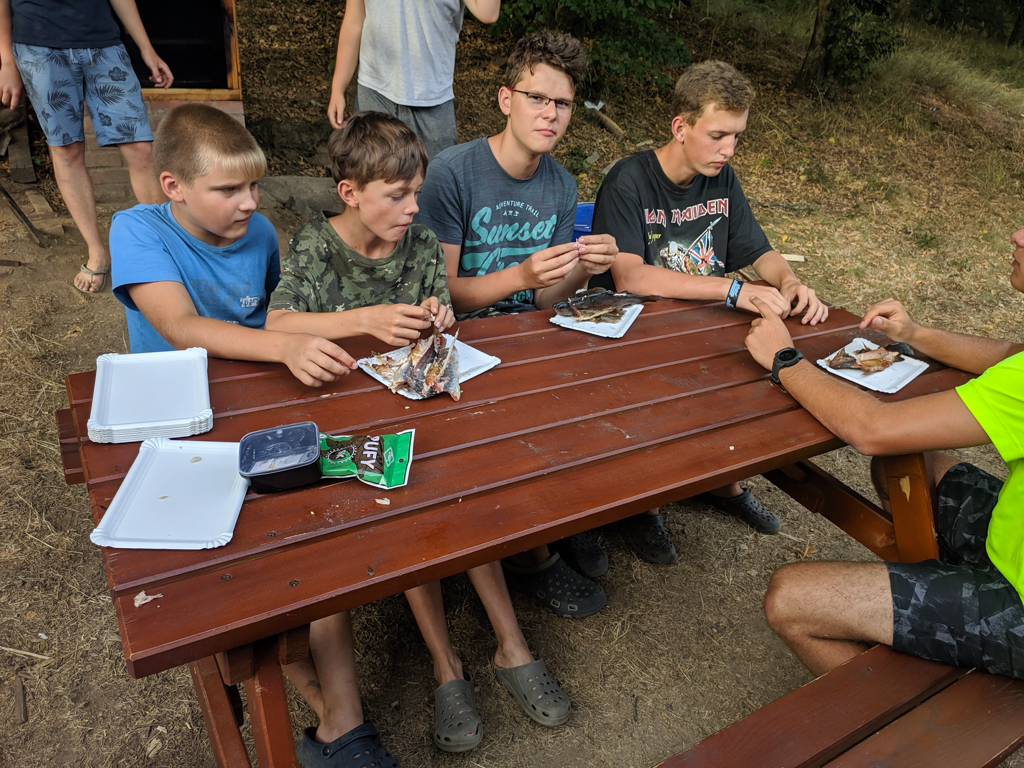 Dny plynuly, úlovky a zážitky přibývaly a tábor se pomalu chýlil ke konci. Nikdo však nesmutnil, konec tábora s sebou totiž přináší vyhlášení soutěží. To probíhalo poslední večer před odjezdem. Na děti čekaly hodnotné a užitečné ceny od našich sponzorů, čítají rybářské vybavení, krmení a vše co člověk u vody potřebuje. Sečteno podtrženo, parta lidí se stejnou vášní, dobré počasí a krásné zázemí rovná se povedený tábor, a to ten letošní opravdu byl! Tábor byl podpořen dotací MŠMT.